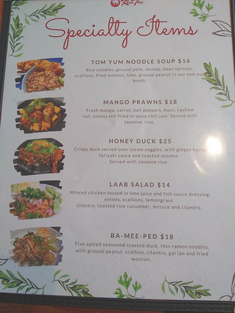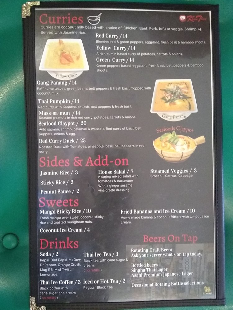 Introducing the menu at Khun Thai, a casual and welcoming restaurant in Brookings, Oregon, known for its delicious Thai cuisine. Customers rave about the freshly prepared dishes, with flavors that are out of this world. From the holy basil beef to the chicken pad Thai, each dish is a culinary delight. The restaurant offers a variety of vegetarian options and accommodates special requests for spice levels. With friendly service and a clean atmosphere, Khun Thai is a top choice for lunch or dinner. Don't miss out on their yellow chicken curry or sizzling seafood platter. The restaurant also offers catering services and has a private parking lot for convenience. Overall, Khun Thai delivers an exceptional dining experience that will leave you eager to return for more.